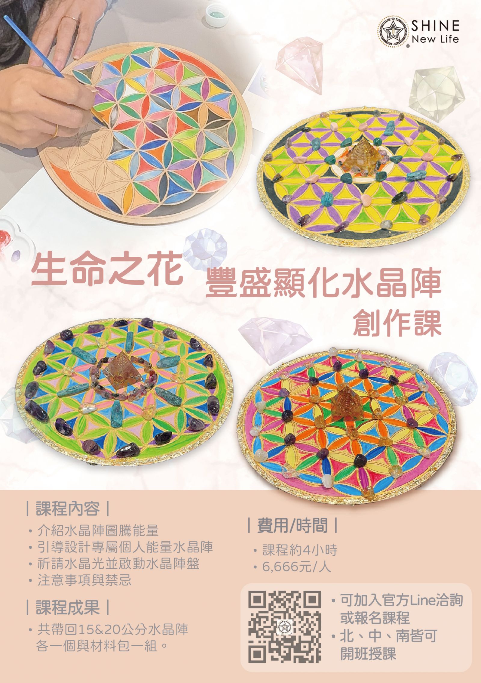 |生命之花 豐盛顯化水晶陣 創作課|桃園水晶陣法課程
